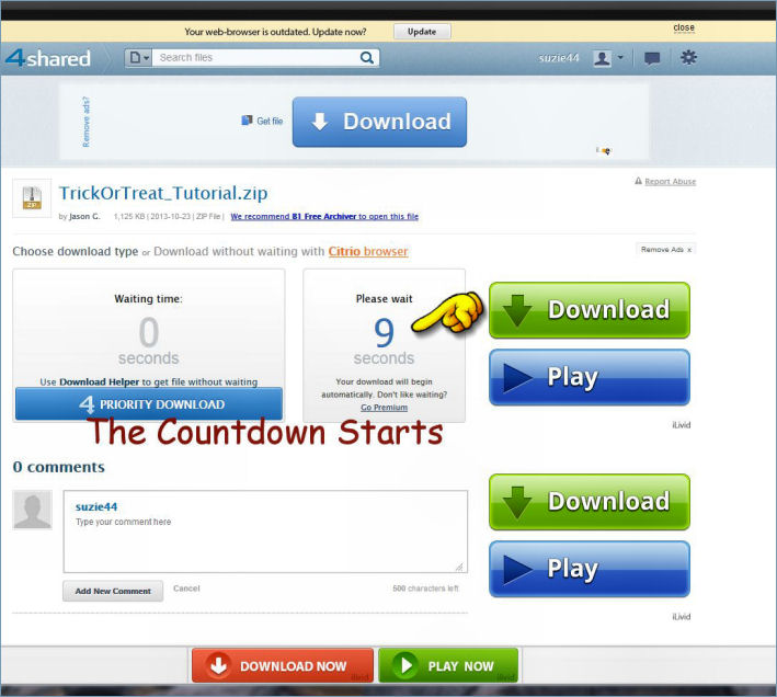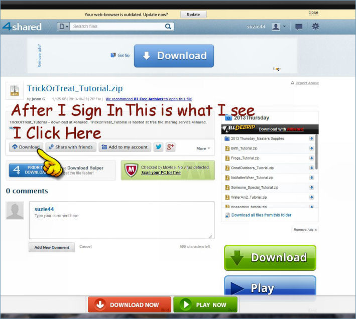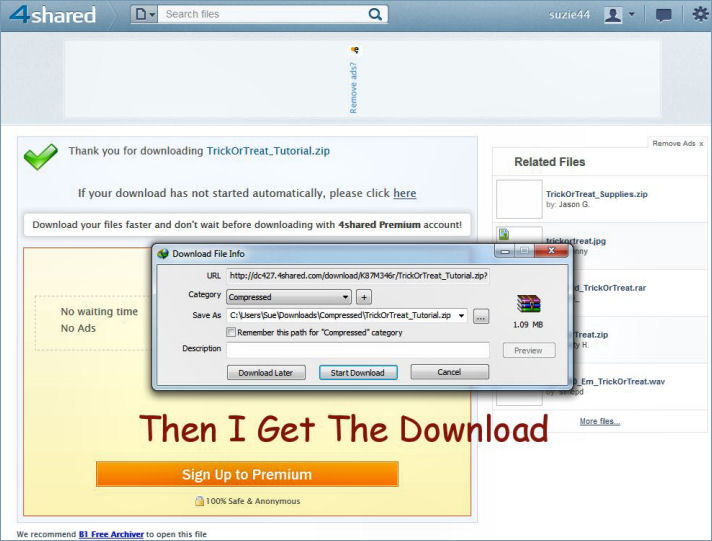 Downloading tutorial supplies at 4Shared