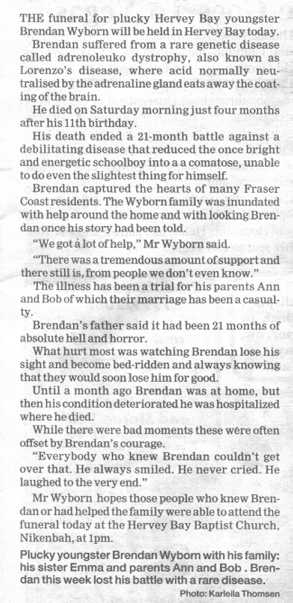 I didn't know Brendan but I have a son and grandchildren of my own and I know how I would feel if this happened to one of them. Life is short enough for most of us, but to be snatched away from one so young, full of hopes and dreams, is especially devastating for his family and friends.