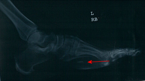 Some metal 'pin like' object inside my foot