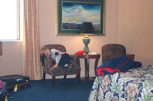 | 10th January 2001 We waited and waited and waited for the limousine to arrive to take us to the airport. When 'it' finally arrived it looked like it belonged in the scrapheap! How embarassing... especially at the Sheraton! The woman driving apologised for being late, but not for the crummy car. The proper car was running behind.... by the time she arrived I didn't care if we'd had to leave on horseback!! Of course to get to Houston we had to fly to Dallas first, then back to Houston! The flight system in the States leaves a lot to be desired!! The flights were almost uneventful... can you believe it! We had an hour's delay in Dallas on the runway, where I fell asleep and when I woke up I thought we'd landed in Houston.... dream on Jamie :-) When we arrived in Houston it was really late.... around 7:30p.m. We'd been on the way for 10 hours! My Internet friend Barbara met us at the arrival gate, she had been waiting for an hour for us to arrive. My other cyber friend Betty couldn't make it to the airport so Barbara and her husband took us to their church for a Family Supper where we got to meet Betty and her husband as well. Mum, unfortunately, was tired from the journey so we had to leave to check in to the hotel. Again, the cold was getting to her and causing problems. However we made plans to meet the next day.