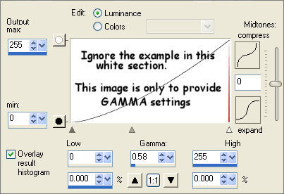 PSP8/9:- ADJUST >>> Brightness & Contrast >>> Gamma Correction = .58