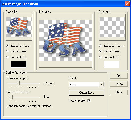 EFFECTS >>> Insert Image Transition >>> ZOOM