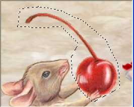 Draw around the cherry and mouse hands as shown