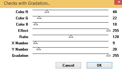 STEP 7 Layers – New Raster Layer Flood Fill with Gradient Effects – MuRa's Seamless – Checks with Gradation With these Settings ![]() |