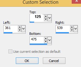 STEP 14 Activate Copy of Raster 1 Activate Selection Tool Custom Selection with these Settings Selections -- Promote Selection to Layer Follow Step 10 |