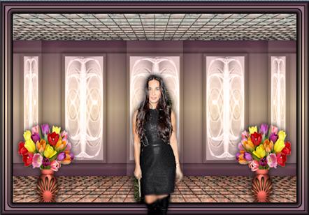 STEP 19 Open and Activate tulip-v pspimage in your workspace. Edit – copy – On your working image -- paste as new layer. With mover tool move to lower left as shown in example. Effects – – 3-D Effects – – Drop Shadow Same Settings Layers – Duplicate Image – Mirror Activate the top layer Open and Activate demi2c. pspimage into your workspace. Edit – copy – On your working image --paste as new layer. With mover tool move to lower right as shown in image to the right Effects – – 3-D Effects – – Drop Shadow Same Settings |