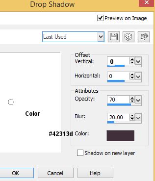 STEP 10 Effects – – 3-D Effects – – Drop Shadow Color = #42313d Selections – –Modify – – Contract = 5 Repeat– –Effects – – 3-D Effects – – Drop Shadow Repeat– –Selections – –Modify – – Contract = 5 Repeat– –Effects – – 3-D Effects – – Drop Shadow Keep-Selected |